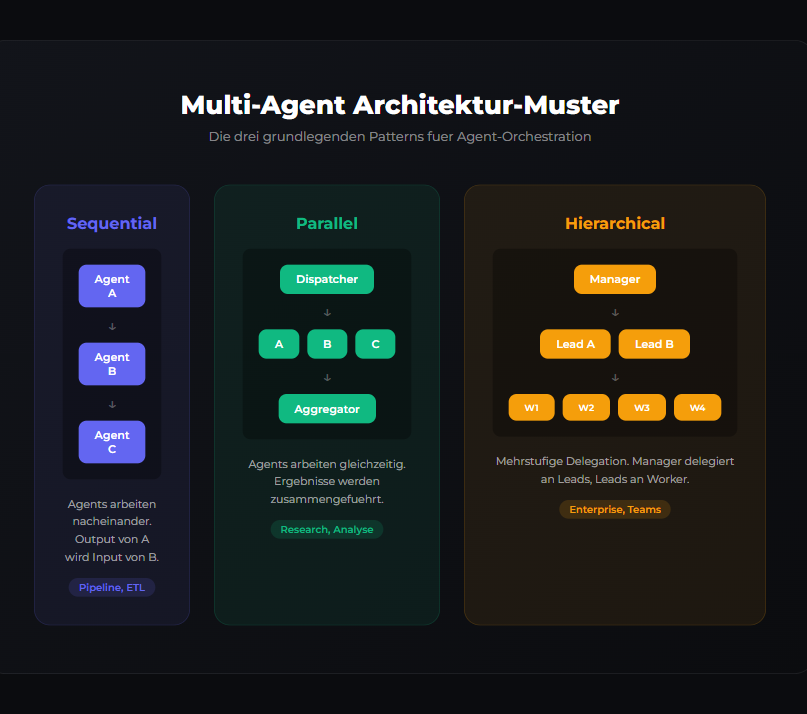 - Klare Rollen definieren — jeder Agent weiß, wofür er zuständig ist