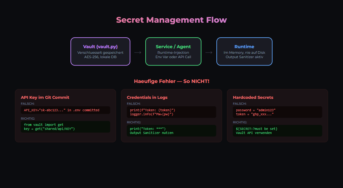 API-Keys sind kritisch. Mit Vault und Environment Variables bleibst du sicher. Einmal leaken ist schwer rückgängig zu machen.